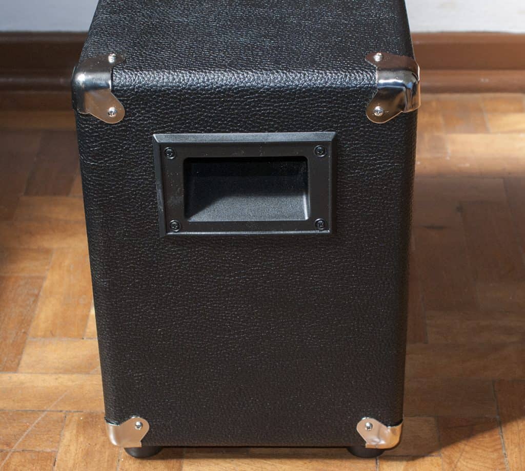 A caixa Mojoboard 1×12″ Standard tem 45cm(alt) x 49cm(larg) x 30cm(prof) é nosso modelo mais tradicional, tem um resultado excelente com a maioria dos alto falantes, tem um som bem equilibrado, é leve e bem dinâmica. Feita em compensado naval 18mm com ferragens importadas.